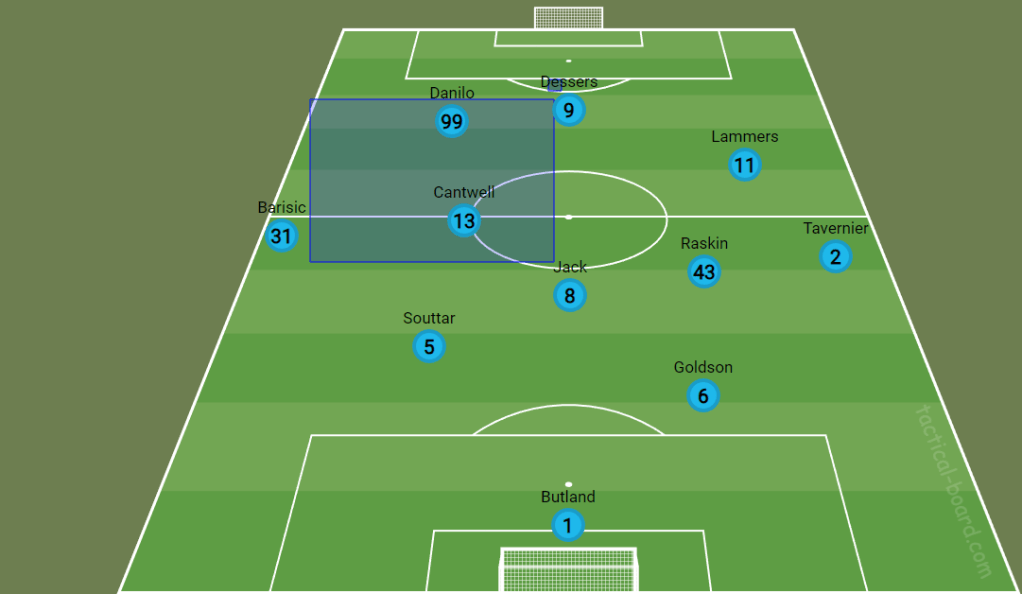 Beale stuck by his guns by employing a similar system on Wednesday night. Dowell and Lundstram were replaced by Cantwell and Jack while Danilo replaced Sima. Instead of playing alongside Dessers as Sima did on Saturday, the Brazilian played slightly to the left of a narrow front three including Lammers. It was reminiscent of the setup of Steven Gerrard’s Rangers a couple of seasons ago.